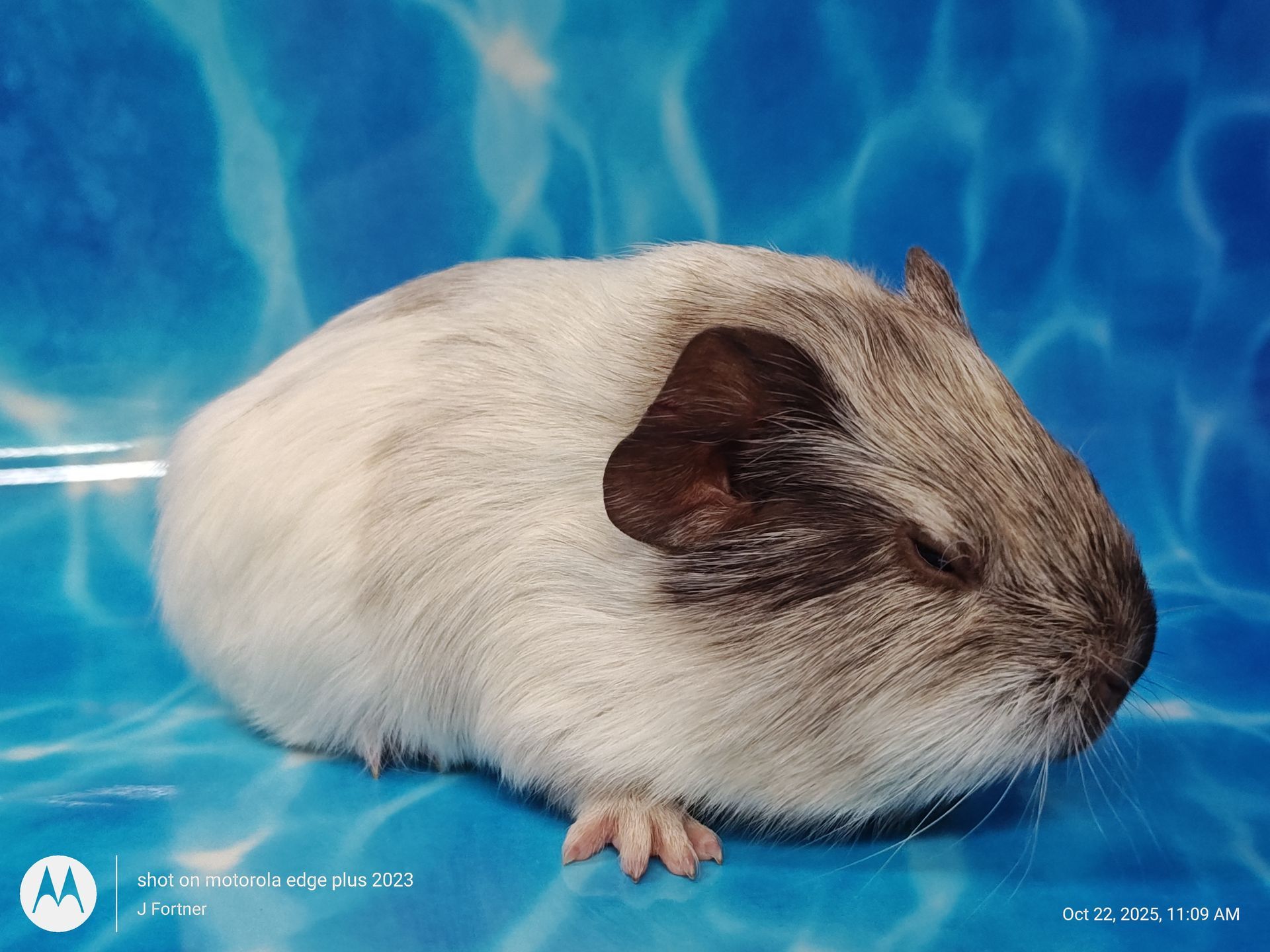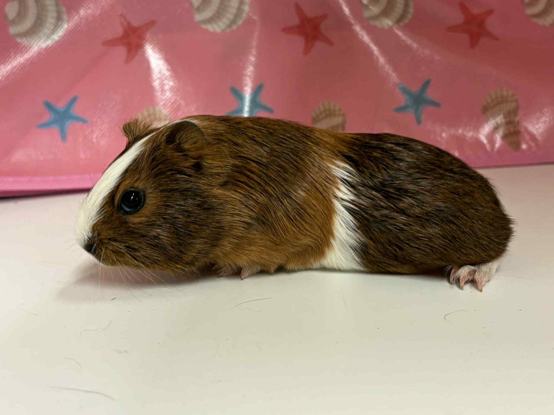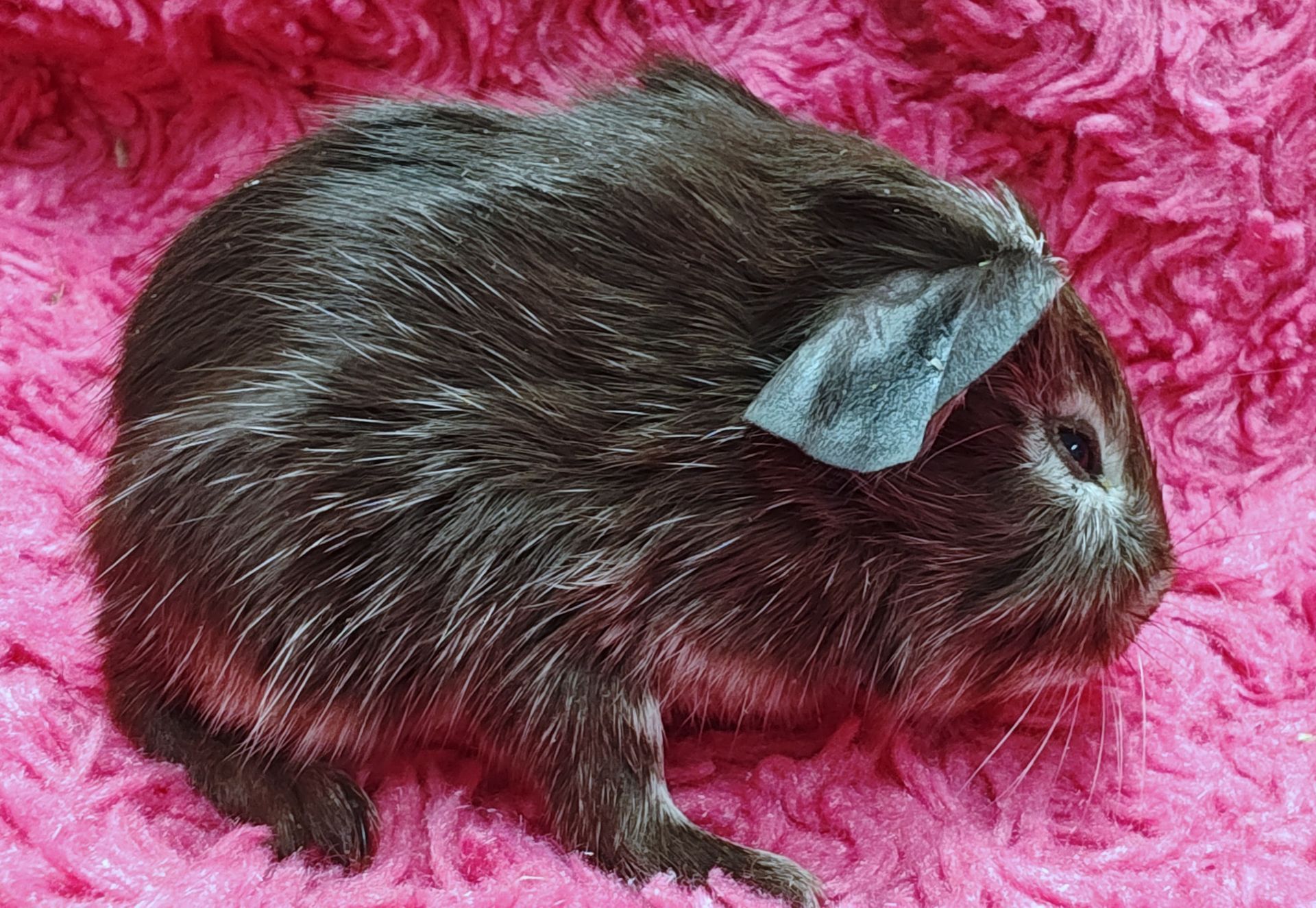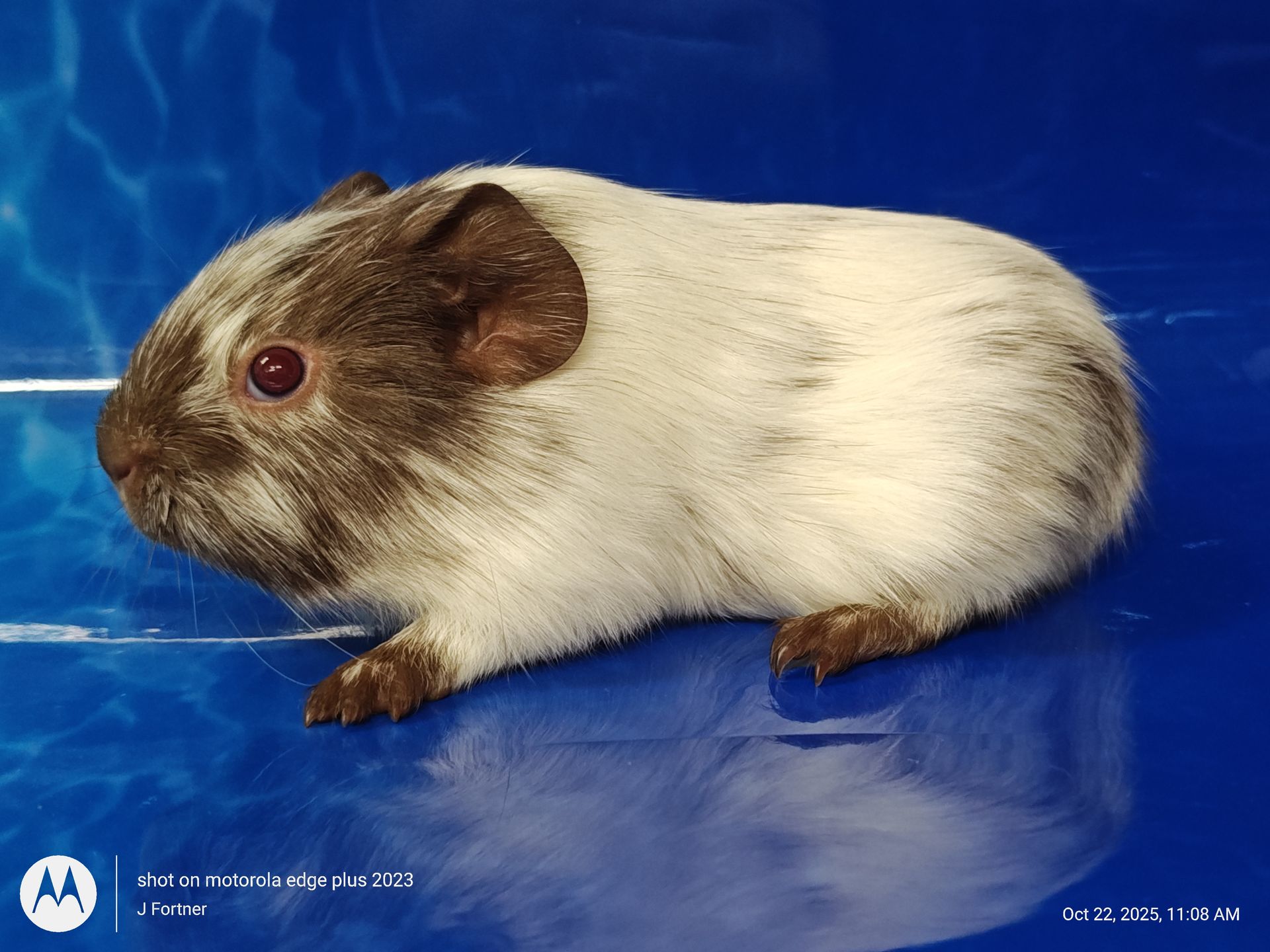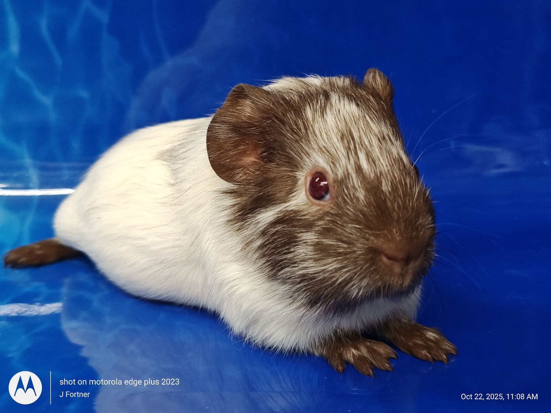 American & Martin/Fox/Tan Pattern & Agoutis (all are short Smooth Haired Cavys) American California & Satin's (Satin is a "satin" guinea pig refers to a breed with a distinctive, glossy, almost glass-like sheen on their coat due to a genetic trait causing hollow hair shafts, giving a unique reflective appearance) & Dalmatian ( Please note* Dal's, Roan's & Satin's should not be bred directly together)