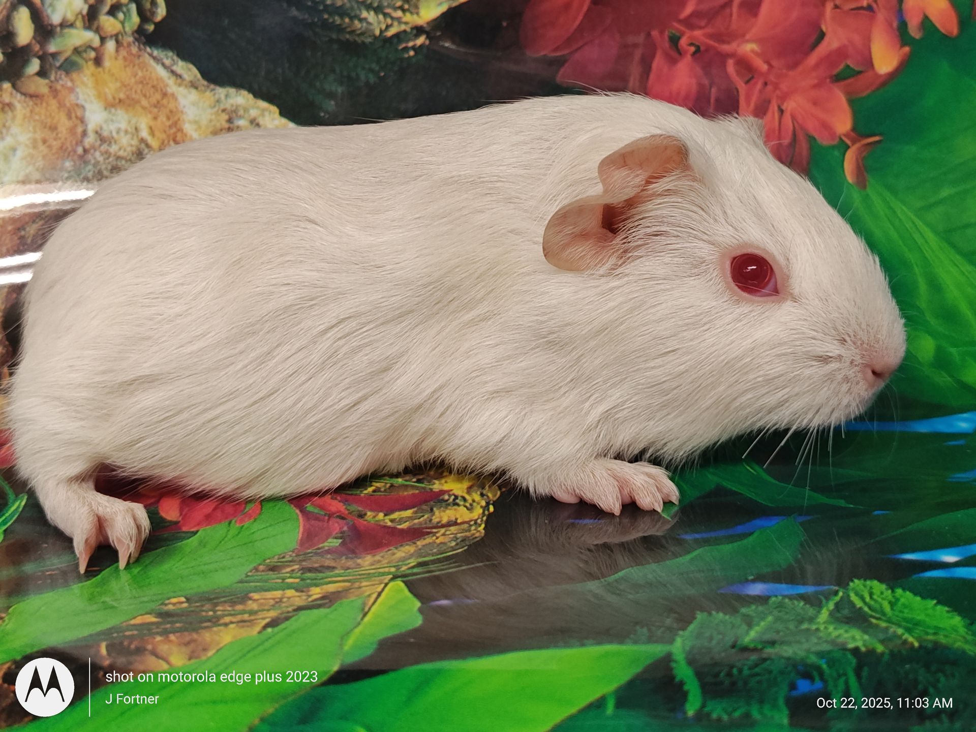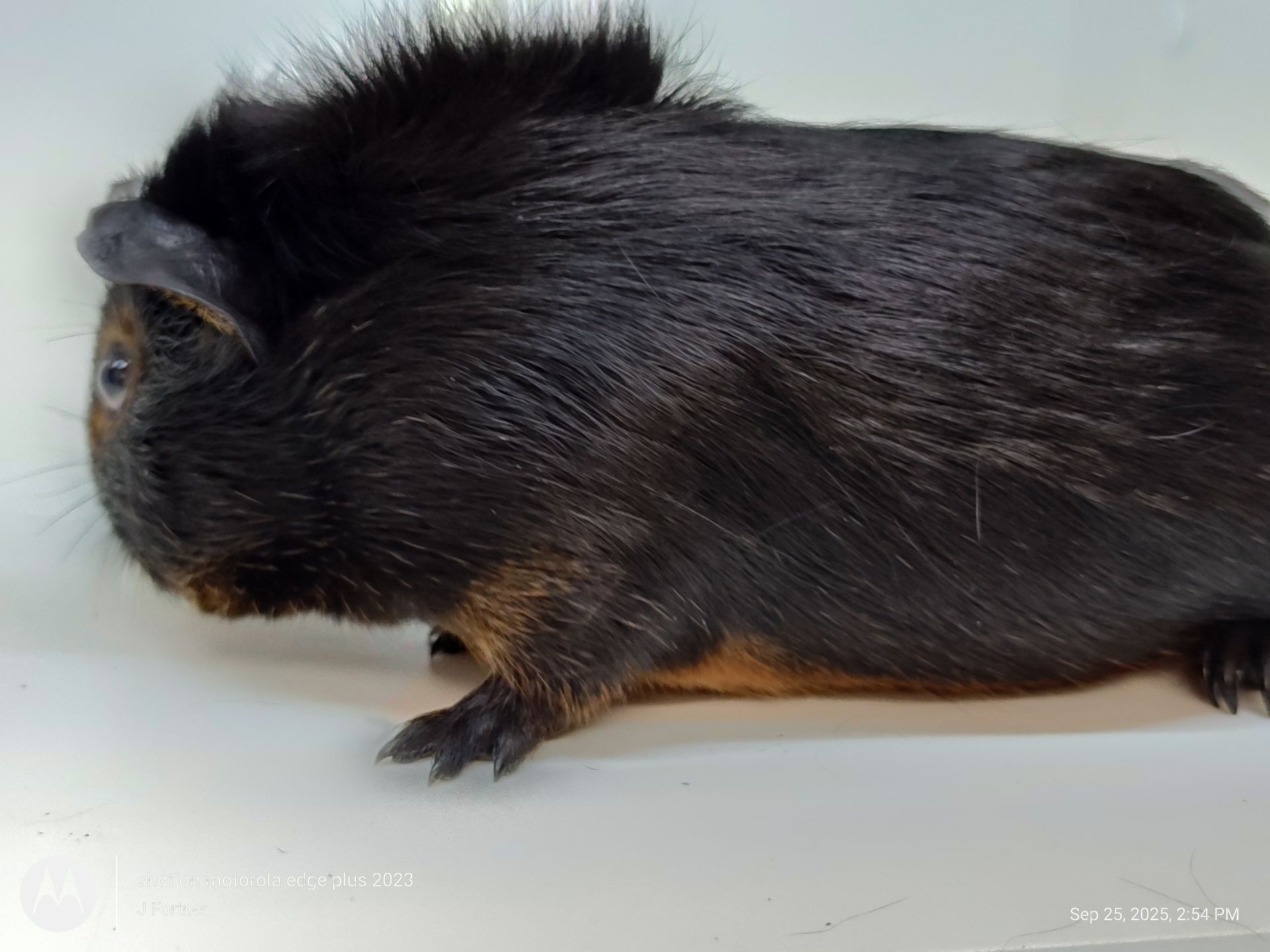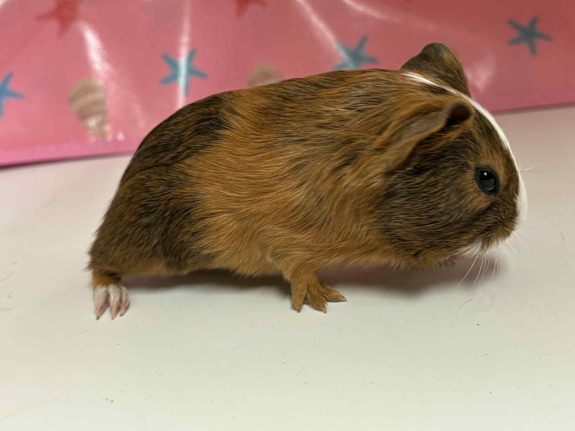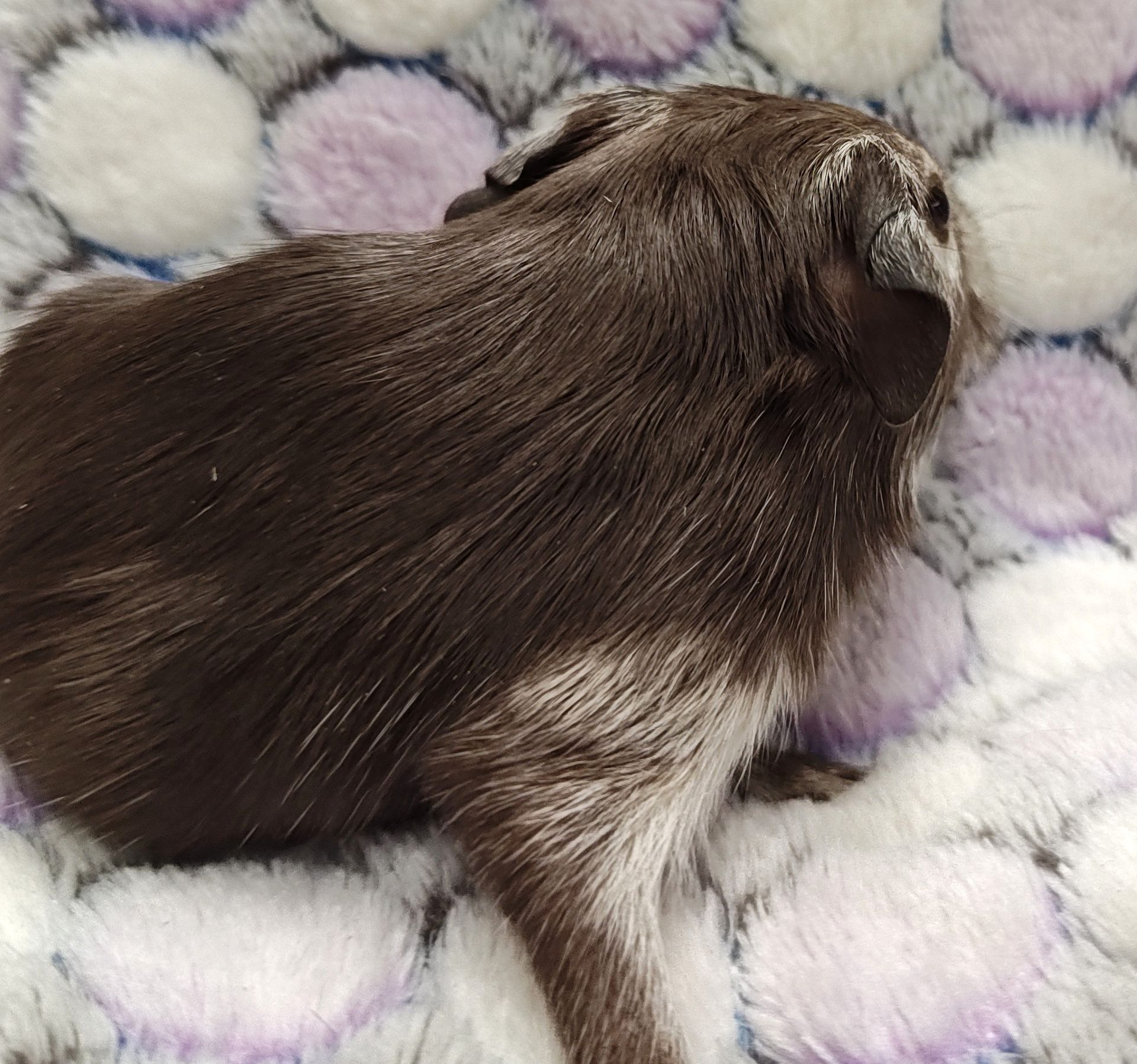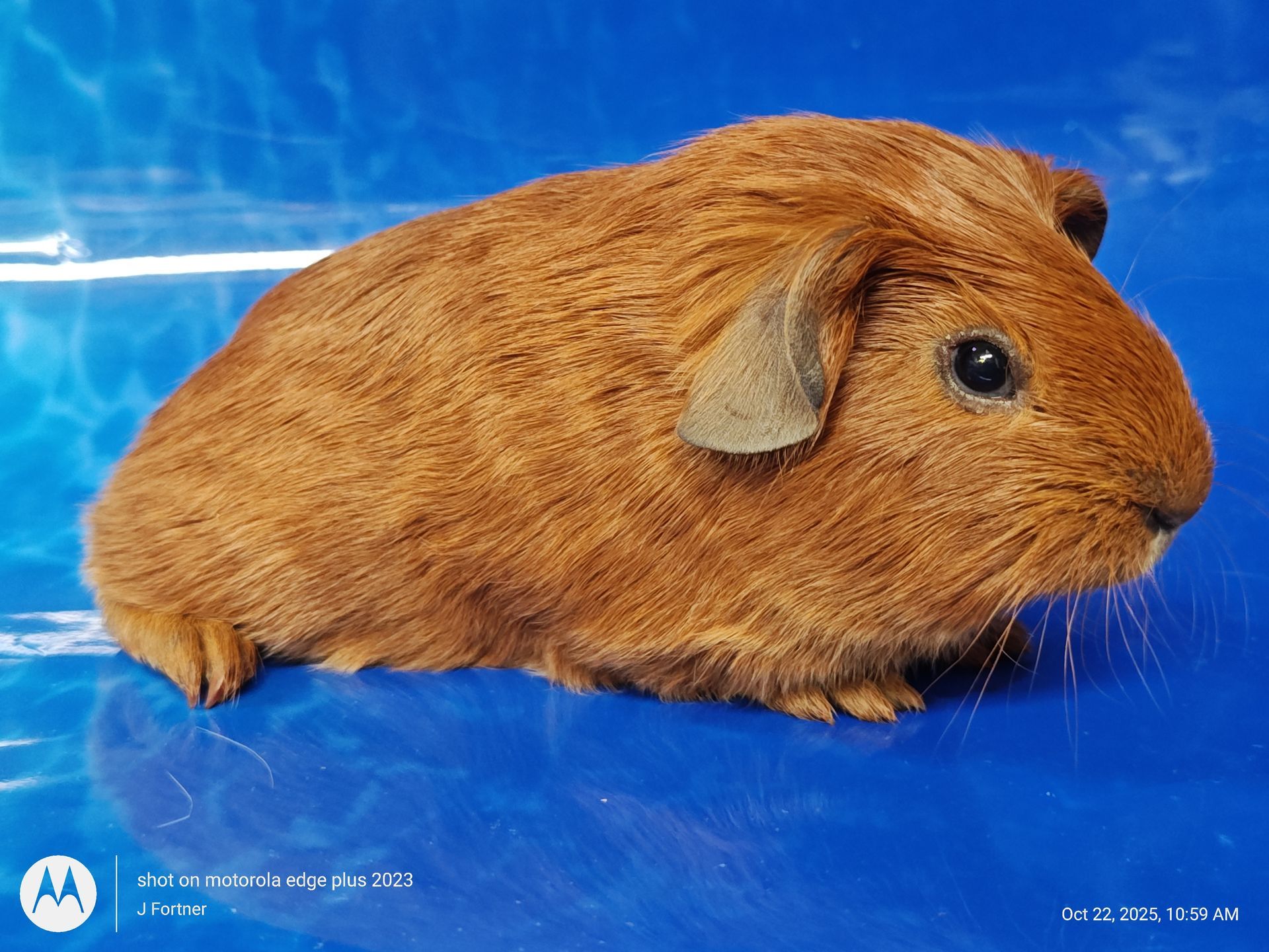 American & Martin/Fox/Tan Pattern & Agoutis (all are short Smooth Haired Cavys) American California & Satin's (Satin is a "satin" guinea pig refers to a breed with a distinctive, glossy, almost glass-like sheen on their coat due to a genetic trait causing hollow hair shafts, giving a unique reflective appearance) & Dalmatian ( Please note* Dal's, Roan's & Satin's should not be bred directly together)