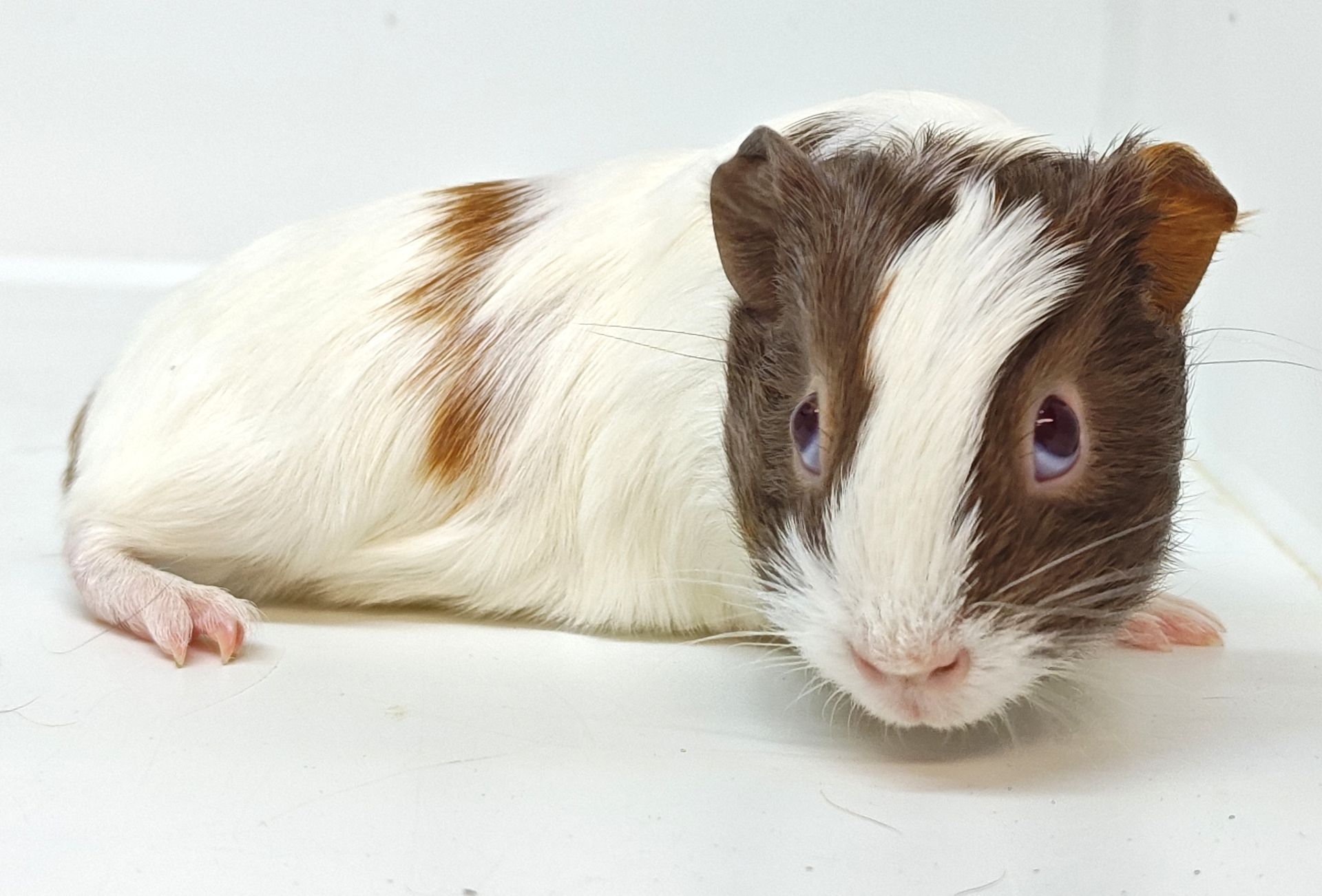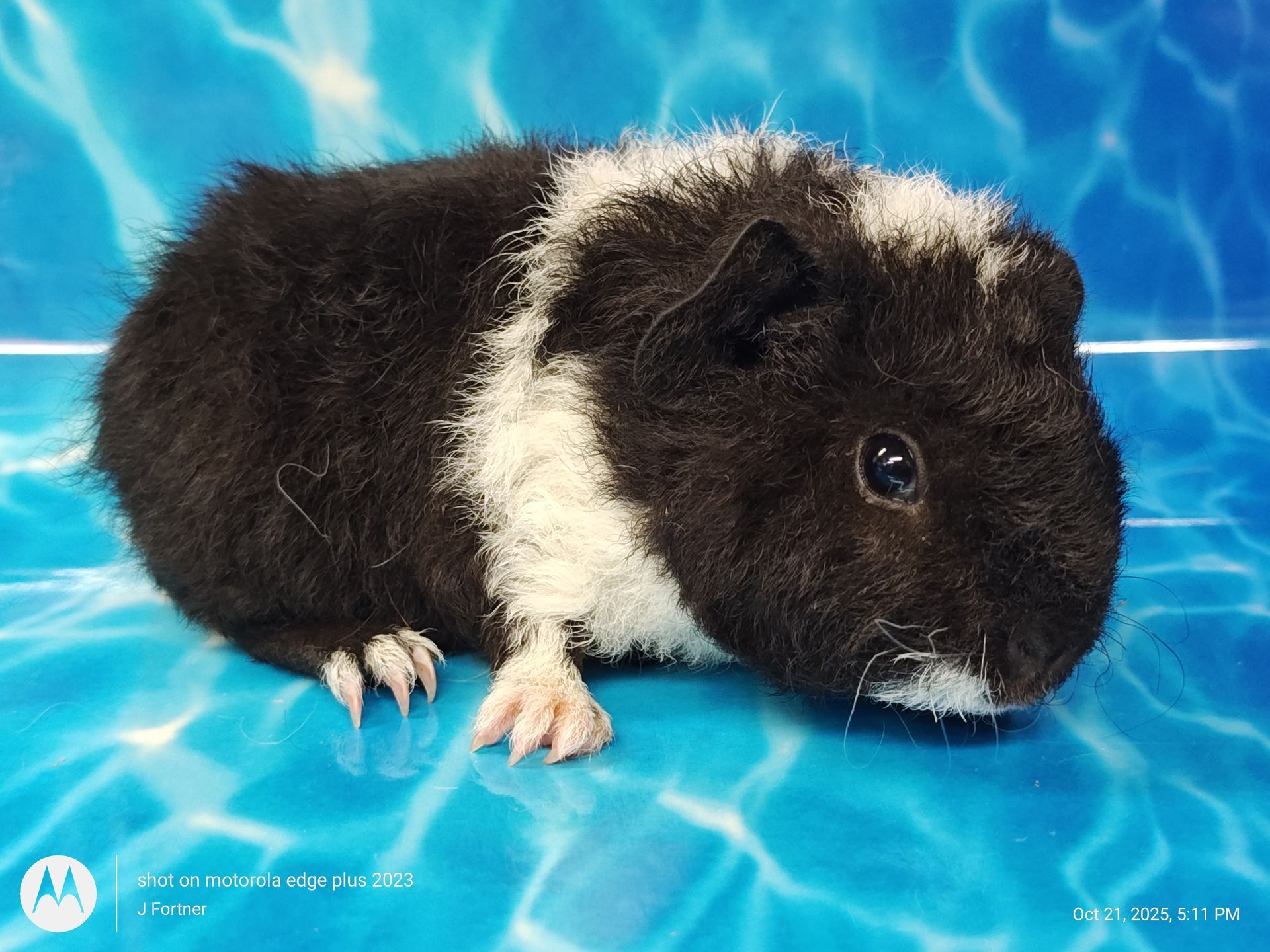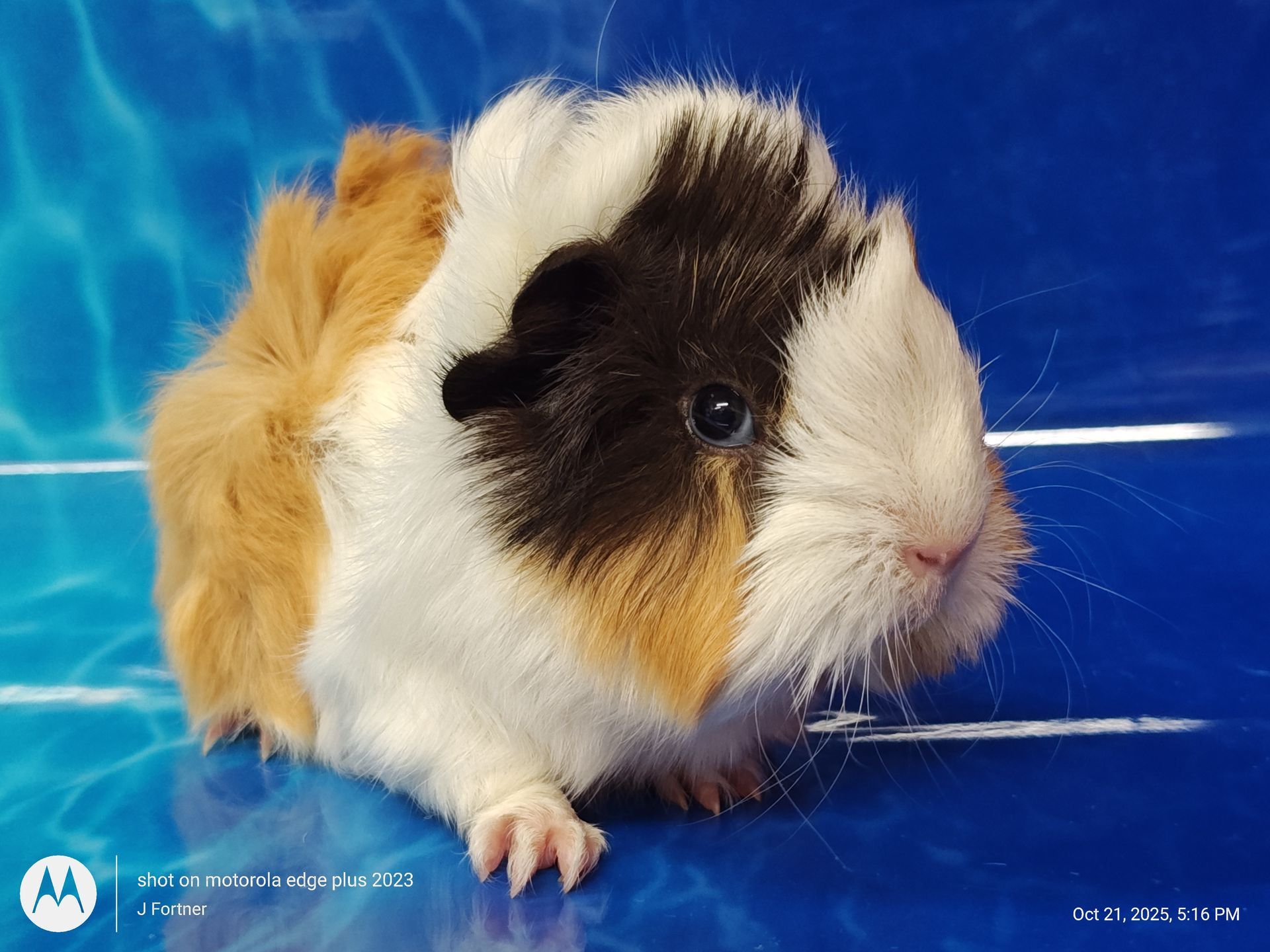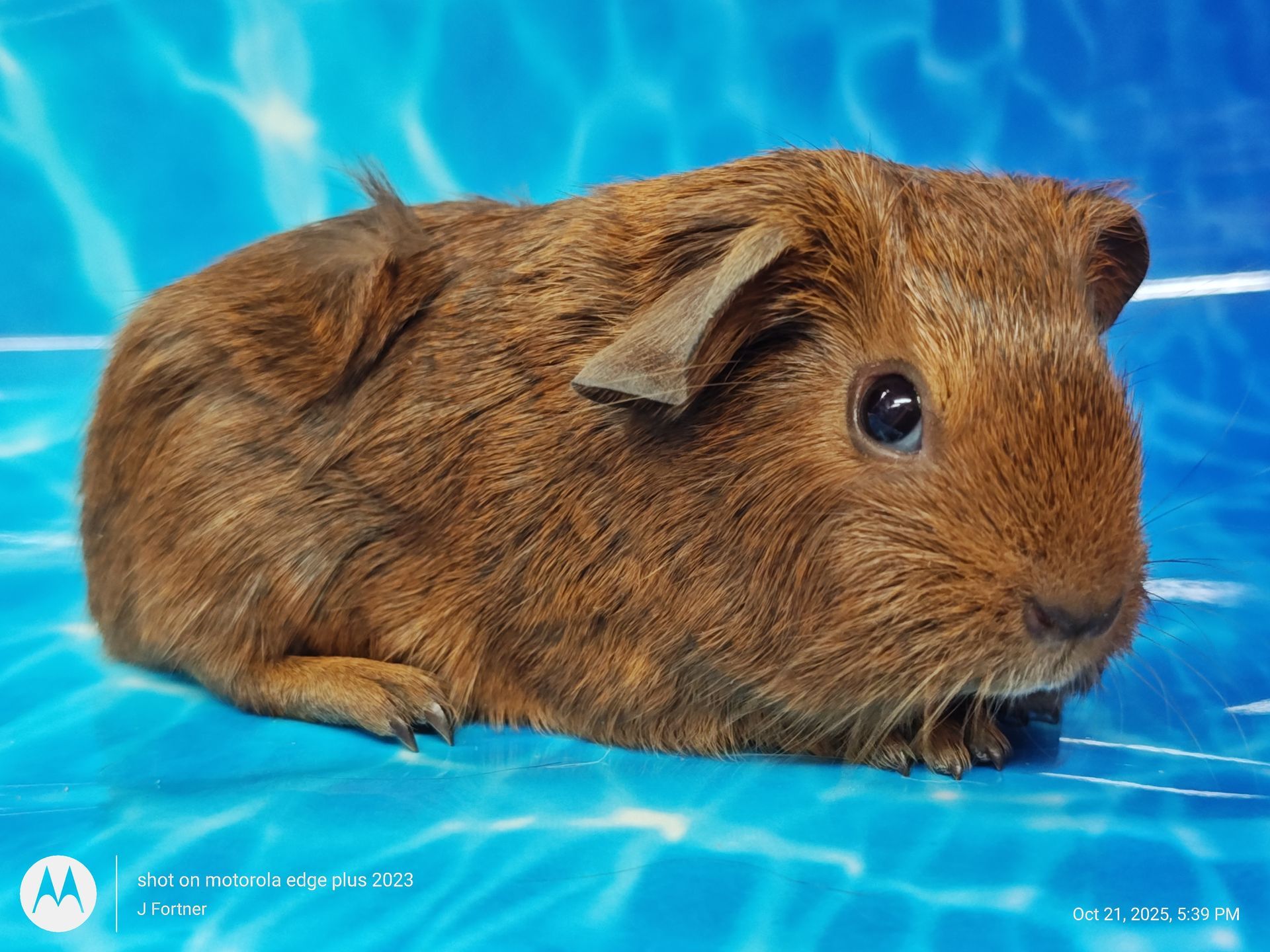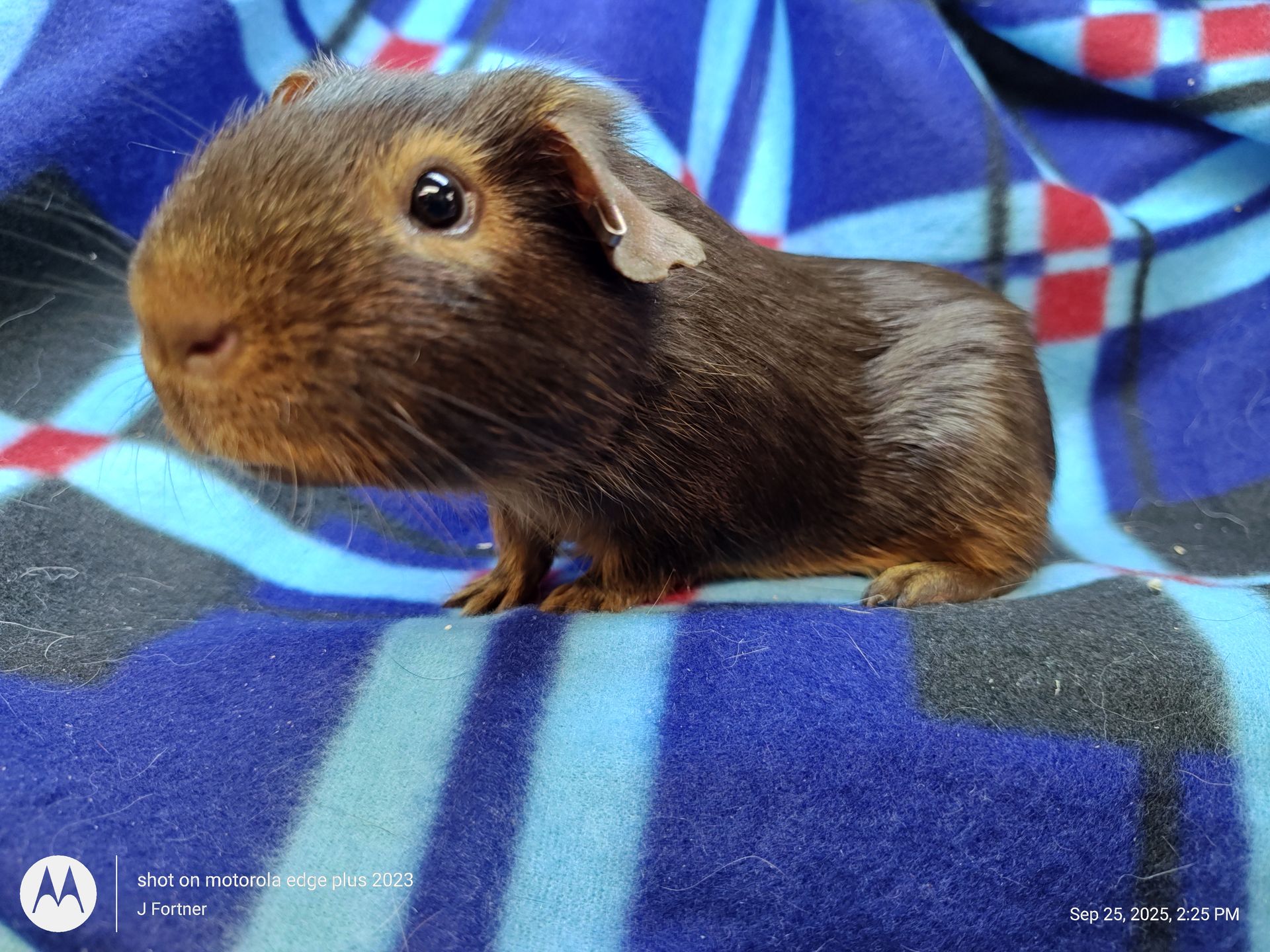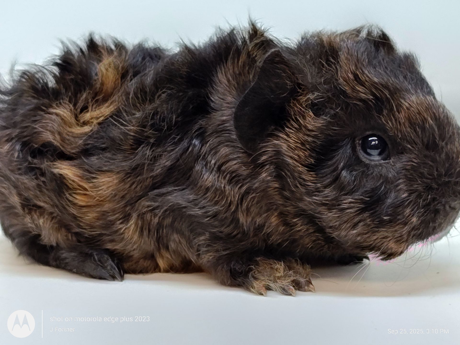 American & Martin/Fox/Tan Pattern & Agoutis (all are short Smooth Haired Cavys) American California & Satin's (Satin is a "satin" guinea pig refers to a breed with a distinctive, glossy, almost glass-like sheen on their coat due to a genetic trait causing hollow hair shafts, giving a unique reflective appearance) & Dalmatian ( Please note* Dal's, Roan's & Satin's should not be bred directly together)