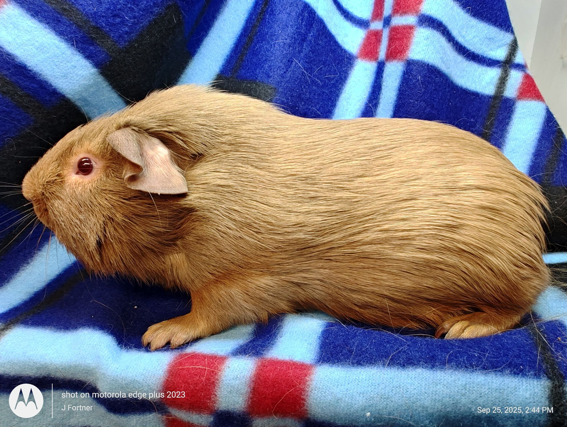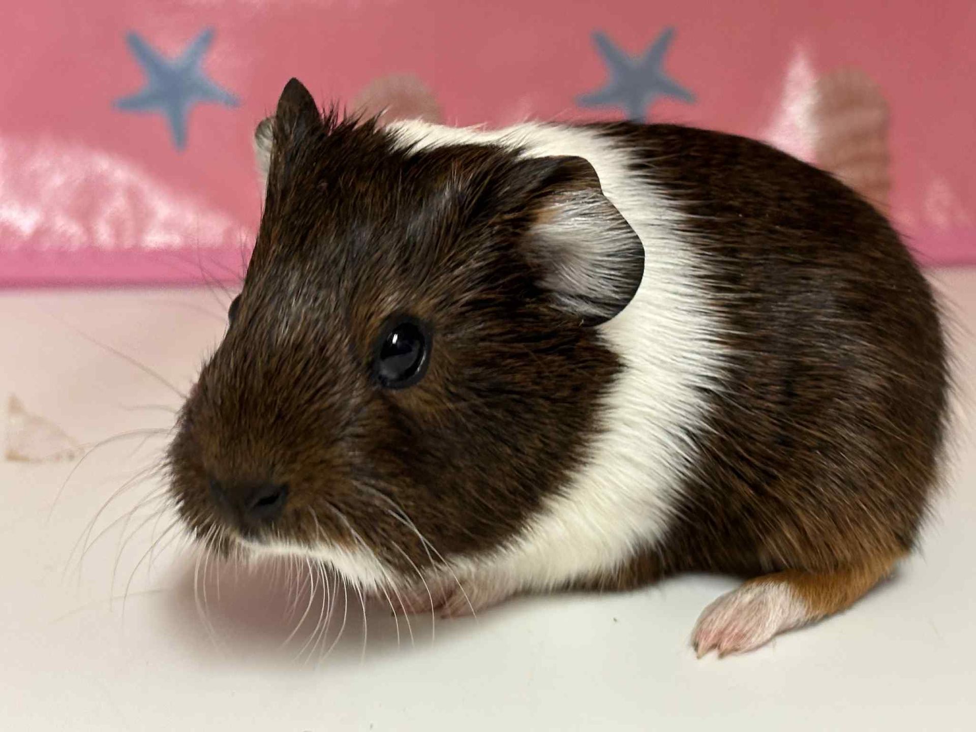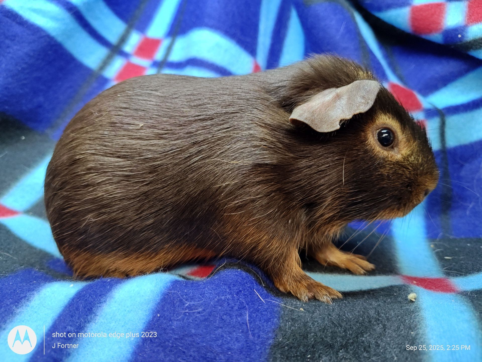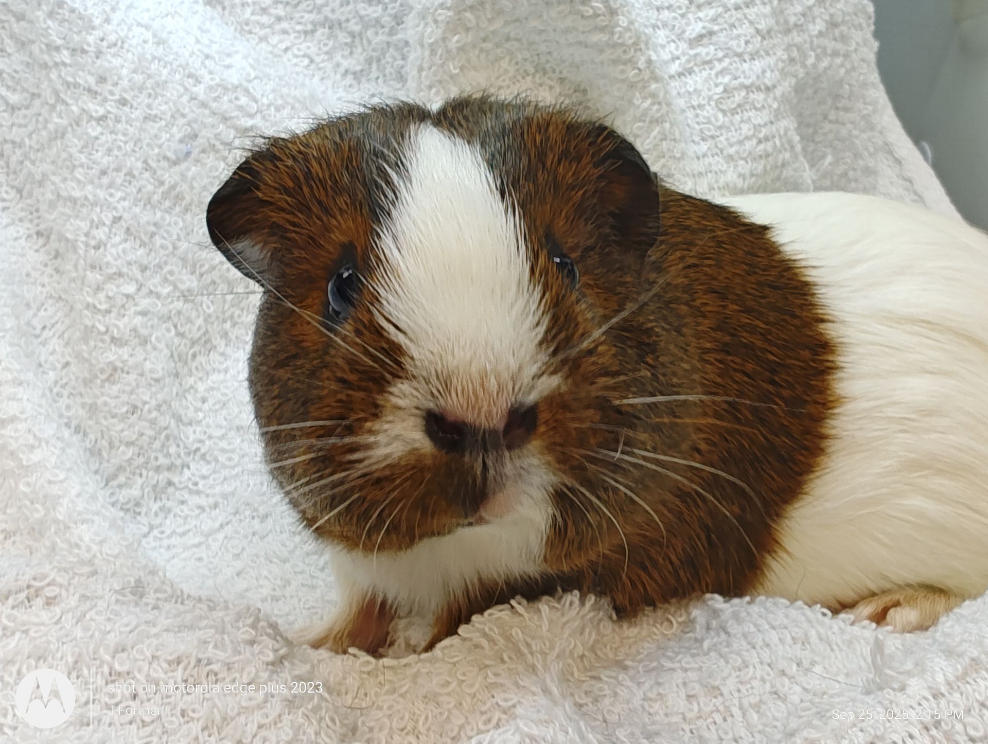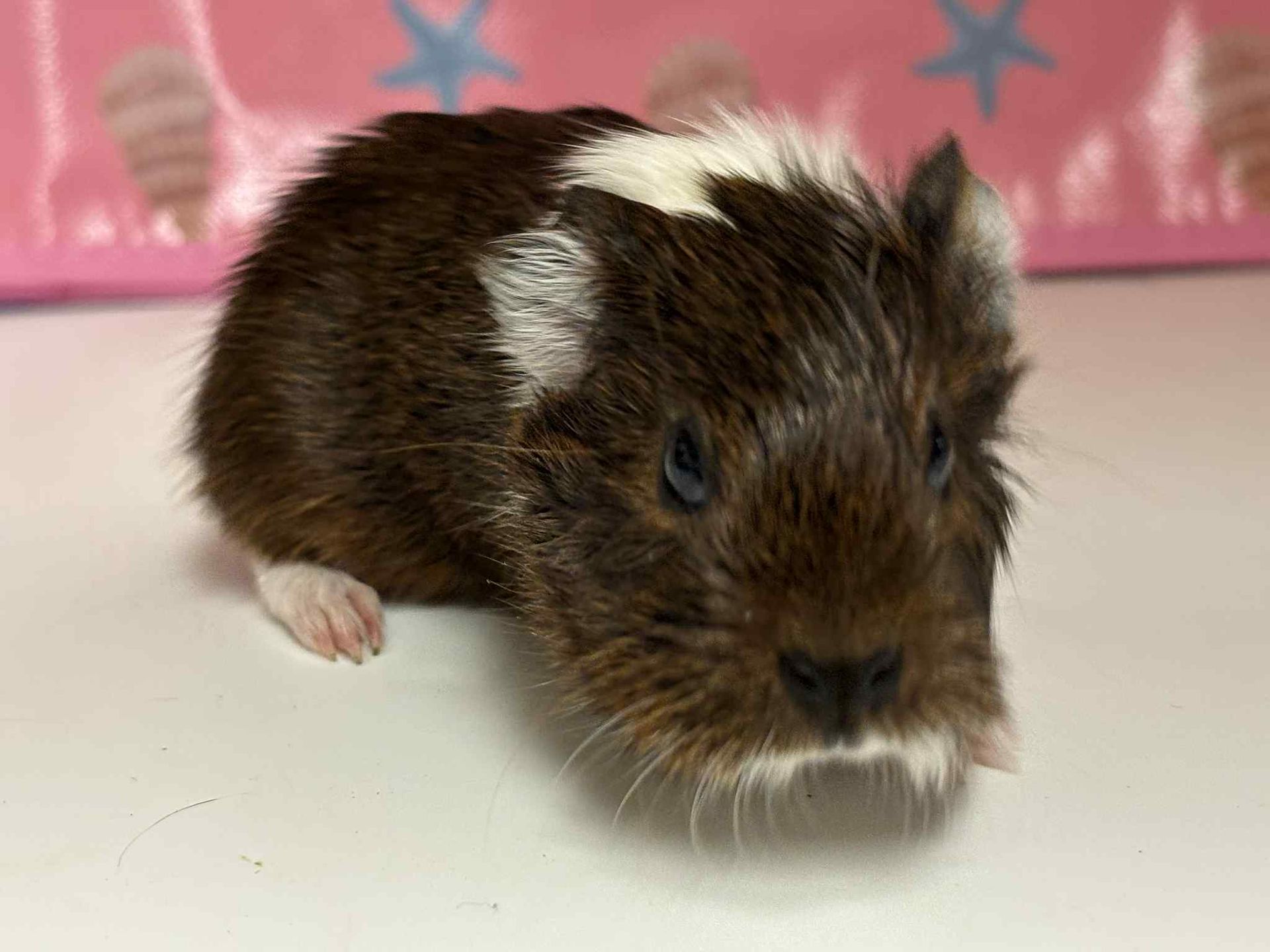 American & Martin/Fox/Tan Pattern & Agoutis (all are short Smooth Haired Cavys) American California & Satin's (Satin is a "satin" guinea pig refers to a breed with a distinctive, glossy, almost glass-like sheen on their coat due to a genetic trait causing hollow hair shafts, giving a unique reflective appearance) & Dalmatian ( Please note* Dal's, Roan's & Satin's should not be bred directly together)