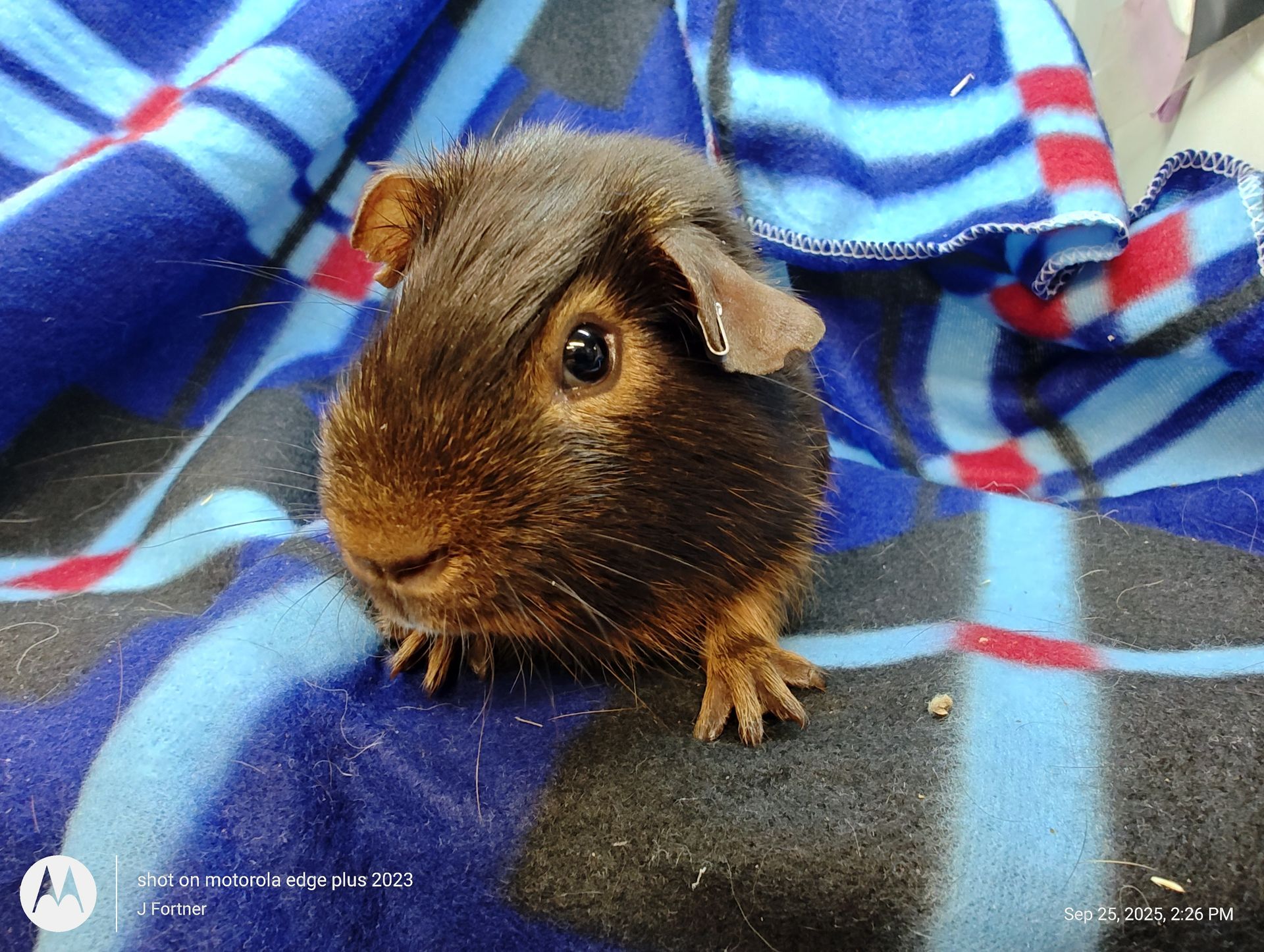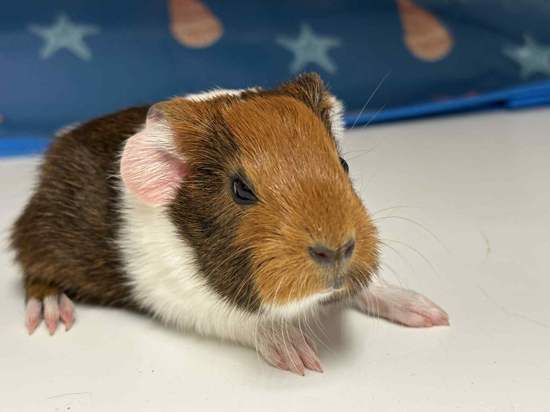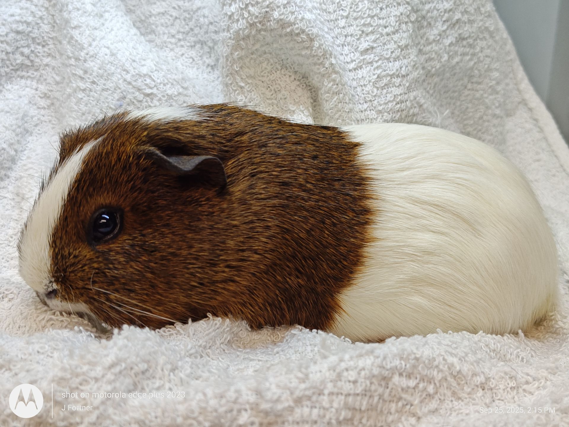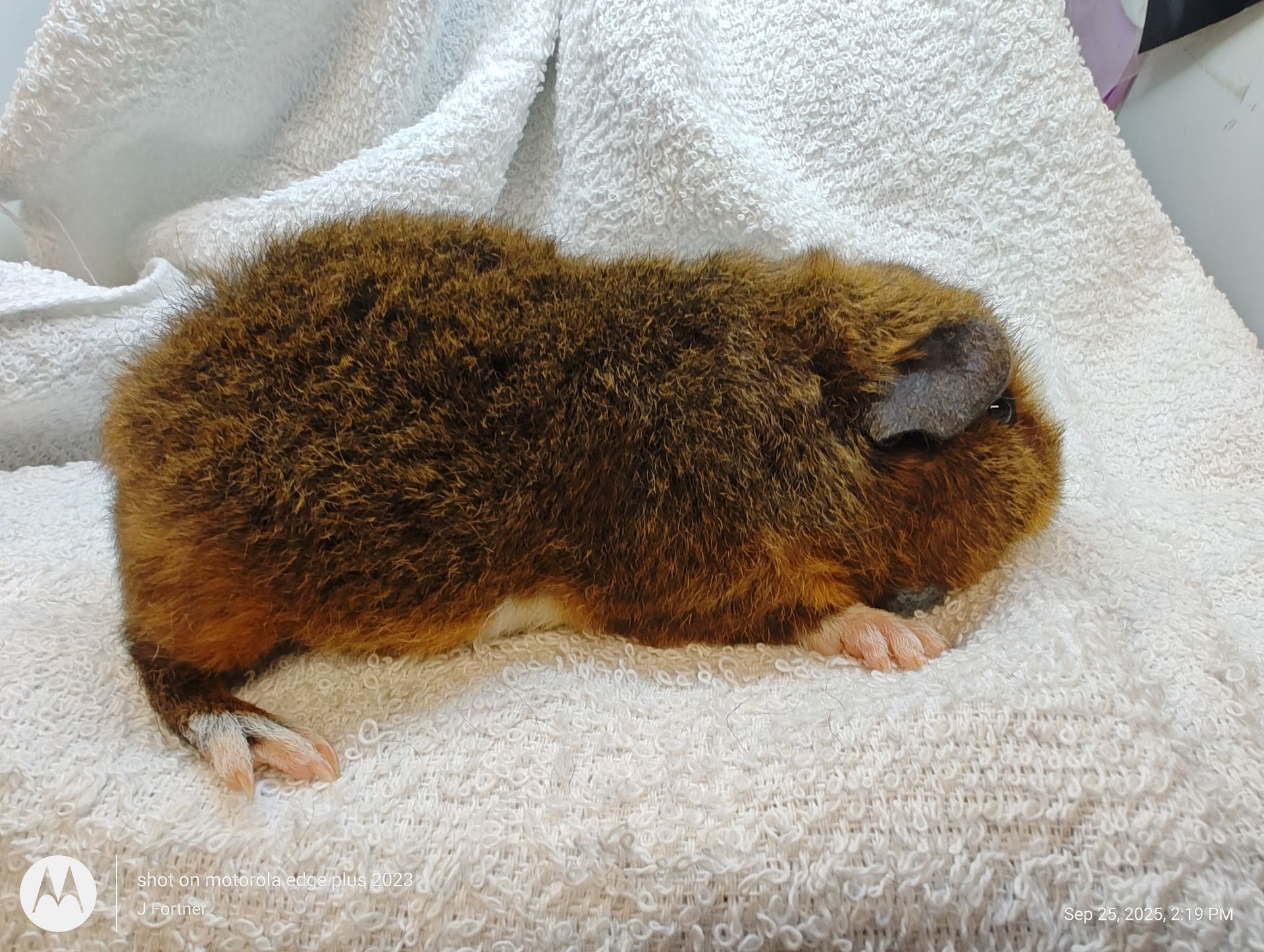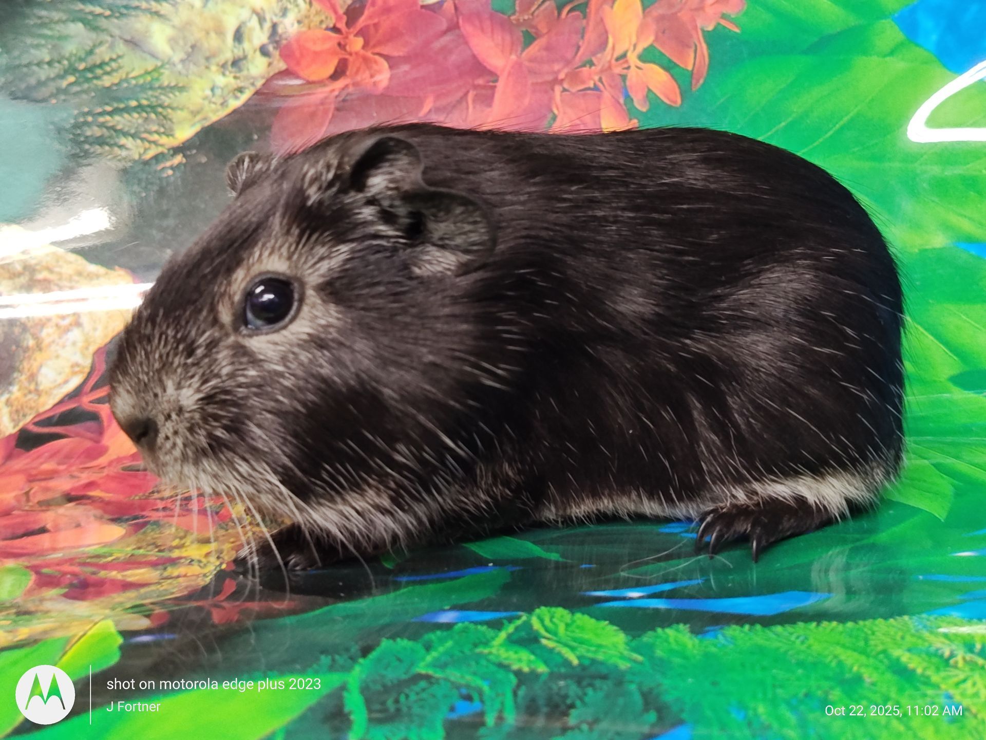 American & Martin/Fox/Tan Pattern & Agoutis (all are short Smooth Haired Cavys) American California & Satin's (Satin is a "satin" guinea pig refers to a breed with a distinctive, glossy, almost glass-like sheen on their coat due to a genetic trait causing hollow hair shafts, giving a unique reflective appearance) & Dalmatian ( Please note* Dal's, Roan's & Satin's should not be bred directly together)